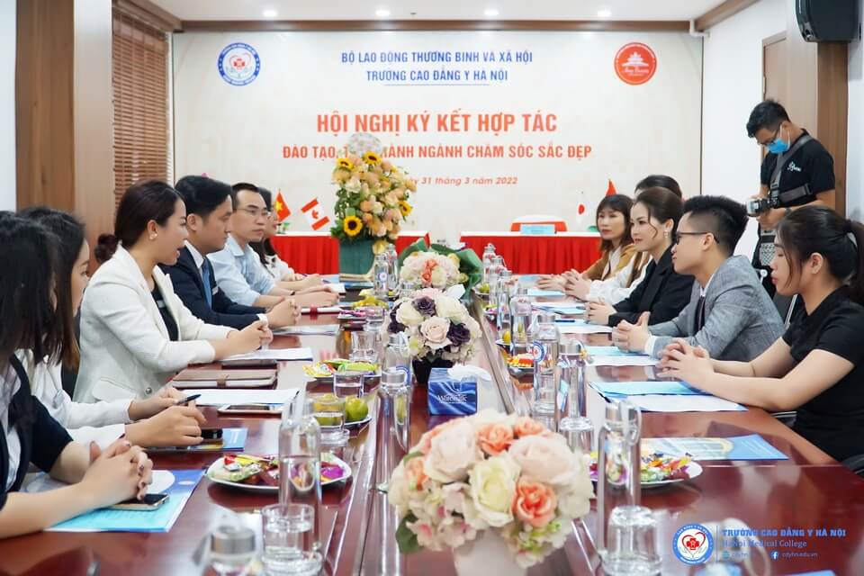 Để tạo điều kiện cho sinh viên ngành Chăm sóc sắc đẹp có thêm cơ hội nâng cao tay nghề và cơ hội việc làm trong ngành Chăm sóc sắc đẹp (Thẩm mỹ), ngày 31/3/2022, Trường Cao đẳng Y Hà Nội và Công ty cổ phẩn Đào tạo Học viện đào tạo Thẩm mỹ AMY tổ chức ký kết Thỏa thuận hợp tác thực hiện Chương trình đào tạo, thực hành và phát triển nguồn nhân lực ngành Chăm sóc sắc đẹp.