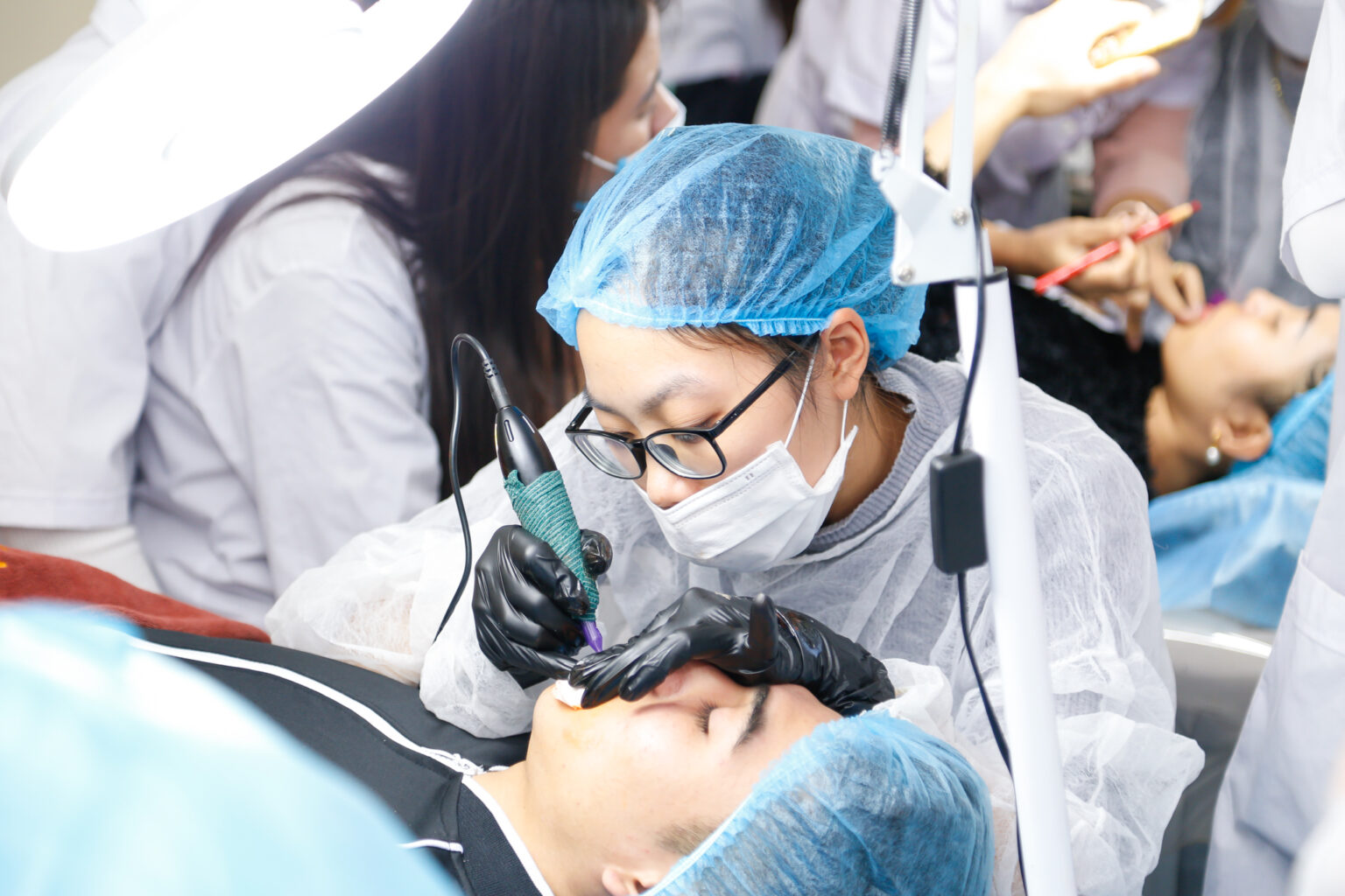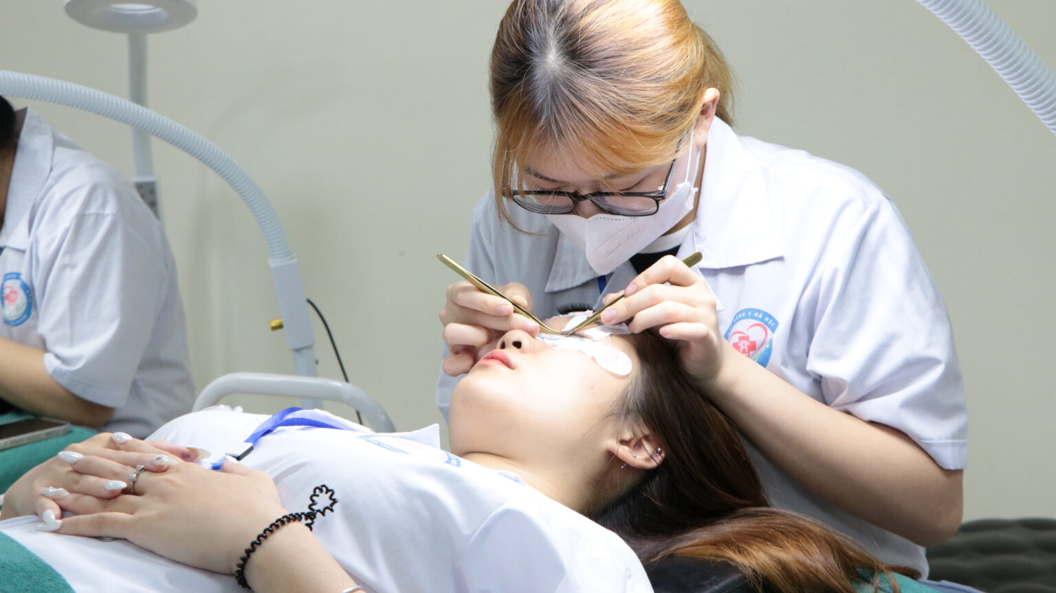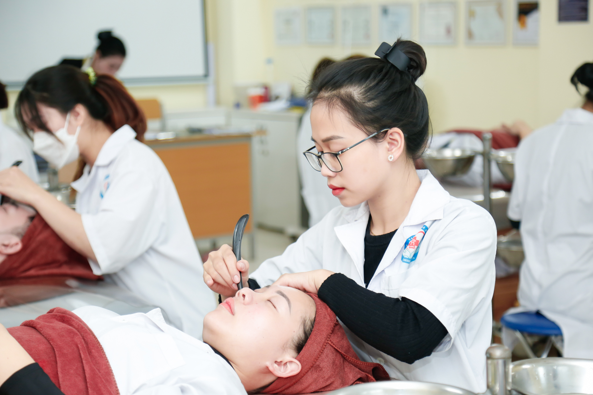 Phun xăm thẩm mỹ là hình thức làm đẹp tác động lên lông mày, môi, mí mắt… Chuyên gia thẩm mỹ sẽ dùng các loại mực chuyên dụng để tạo kiểu và tiến hành phum xăm/điêu khắc. Mục đích mang đến vẻ hài hoà, trẻ trung, tươi tắn cho khuôn mặt. Ngoài ra ngành Chăm sóc sắc đẹp tại Trường Cao đẳng Y Hà Nội sẽ được đào tạo chuẩn Y khoa.
