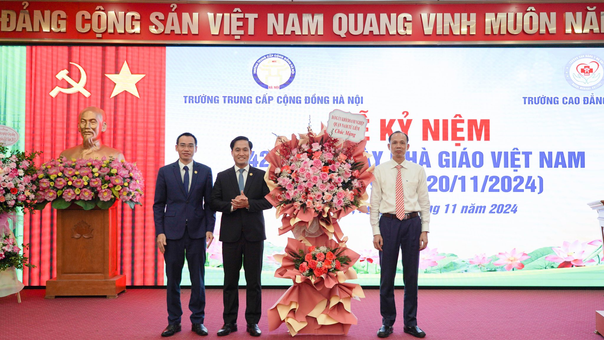 Tại buổi Lễ kỷ niệm, Trường Cao đẳng Y Hà Nội – Cơ sở đào tạo Mỹ Đình đã rất vinh dự được đón nhận lẵng hoa chúc mừng của Đảng ủy khối doanh nghiệp quận Nam Từ Liêm.