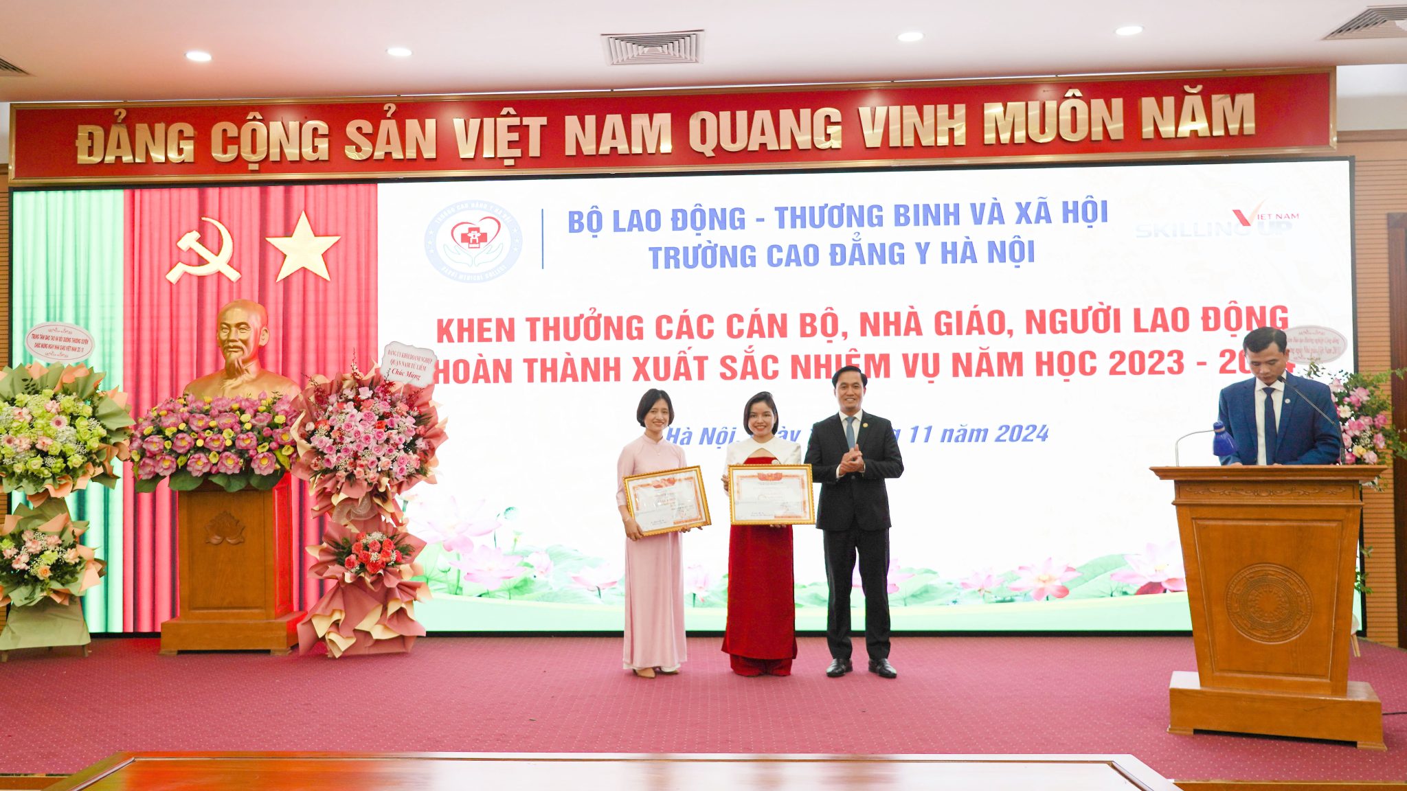 Với truyền thống “Tôn sư trọng đạo”, “Uống nước nhớ nguồn”, tháng 11 hàng năm là dịp để Nhà trường bày tỏ tình cảm, sự tri ân tới các thầy cô đã gắn bó và cống hiến cho sự nghiệp giáo dục đào tạo của nước nhà nói chung và của Nhà tường nói riêng. Để ghi nhận những đóng góp, thành tựu đó. Ban Giám hiệu Nhà trường cũng đã trao giấy khen và phần thưởng cho các cá nhân, tập thể đã hoàn thành xuất sắc trong năm học 2023 – 2024